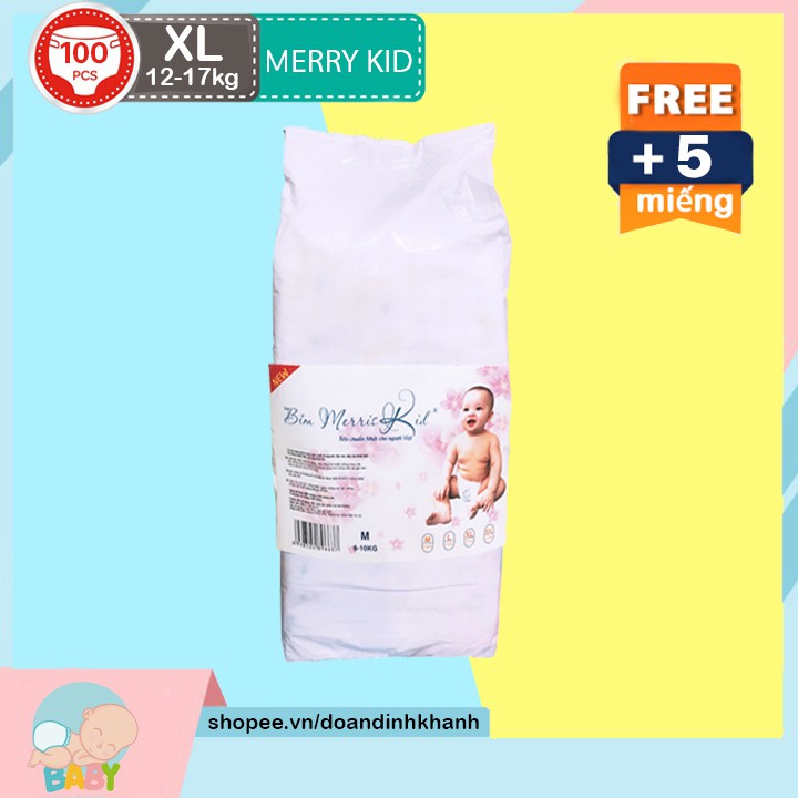 chỉ còn 323,100đ bỉm / tã quần / bỉm quần MERICKID HY65T Gói 100 miếng size XL+ Tặng Thêm 5 miếng cho bé